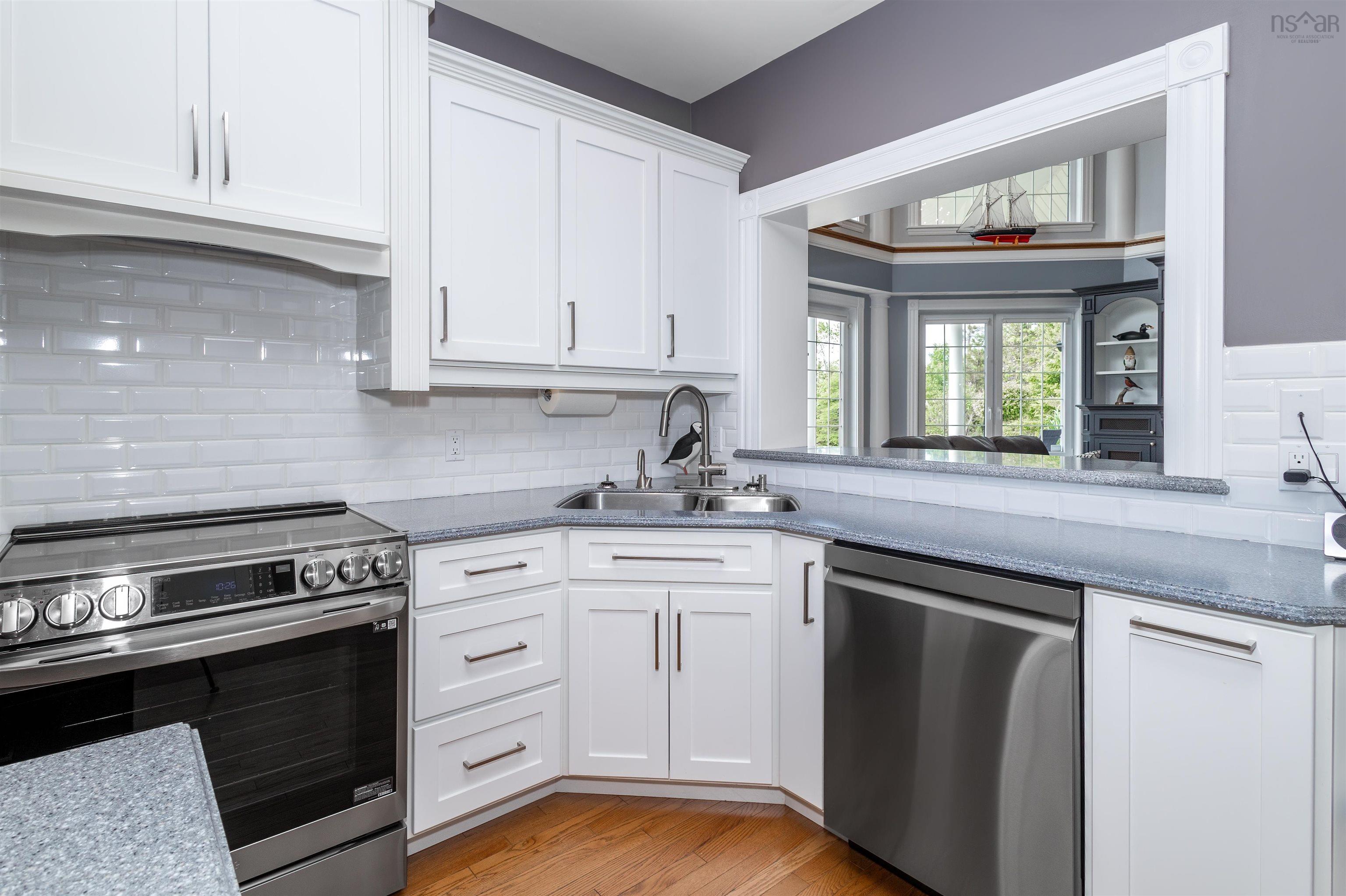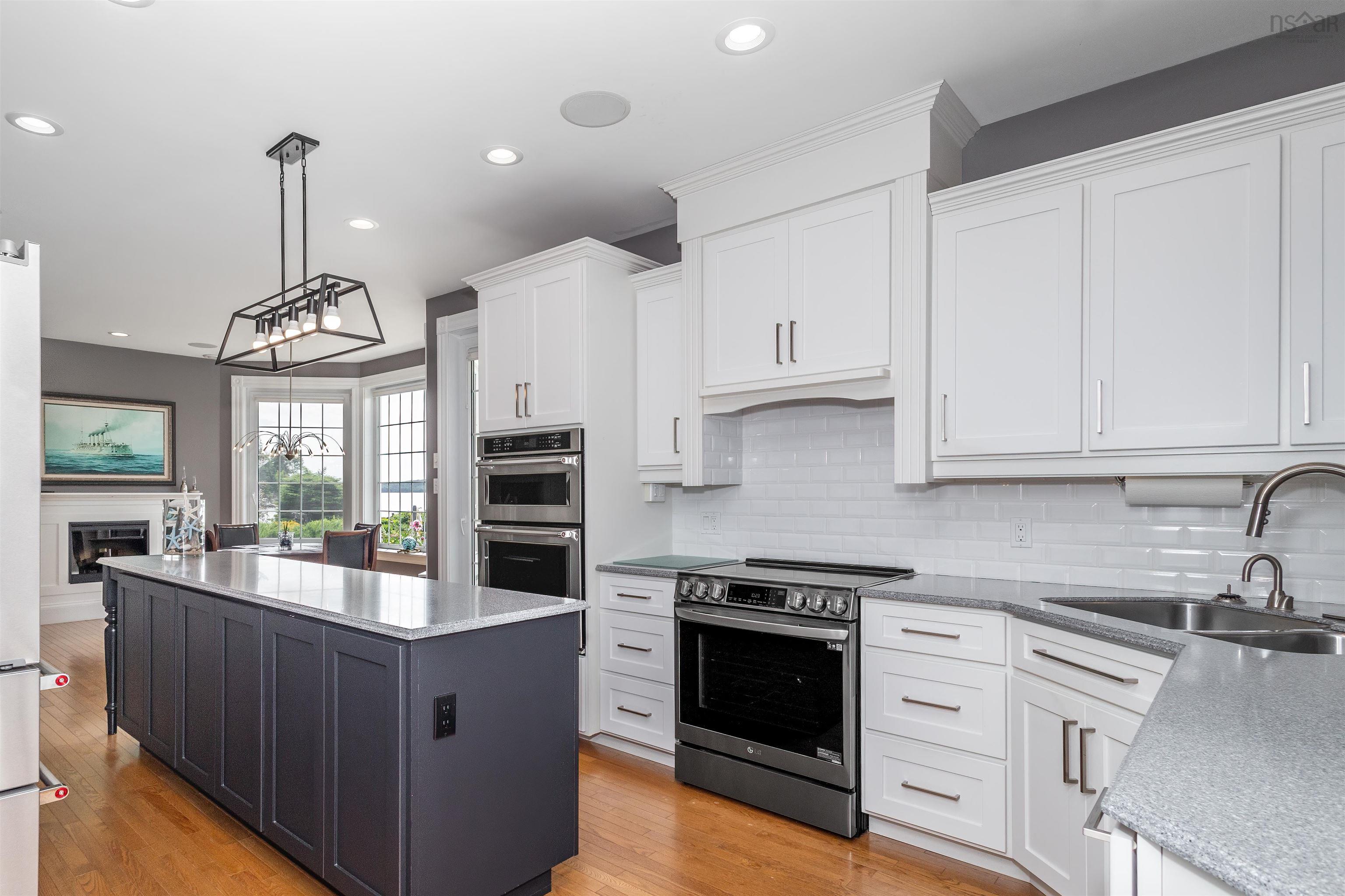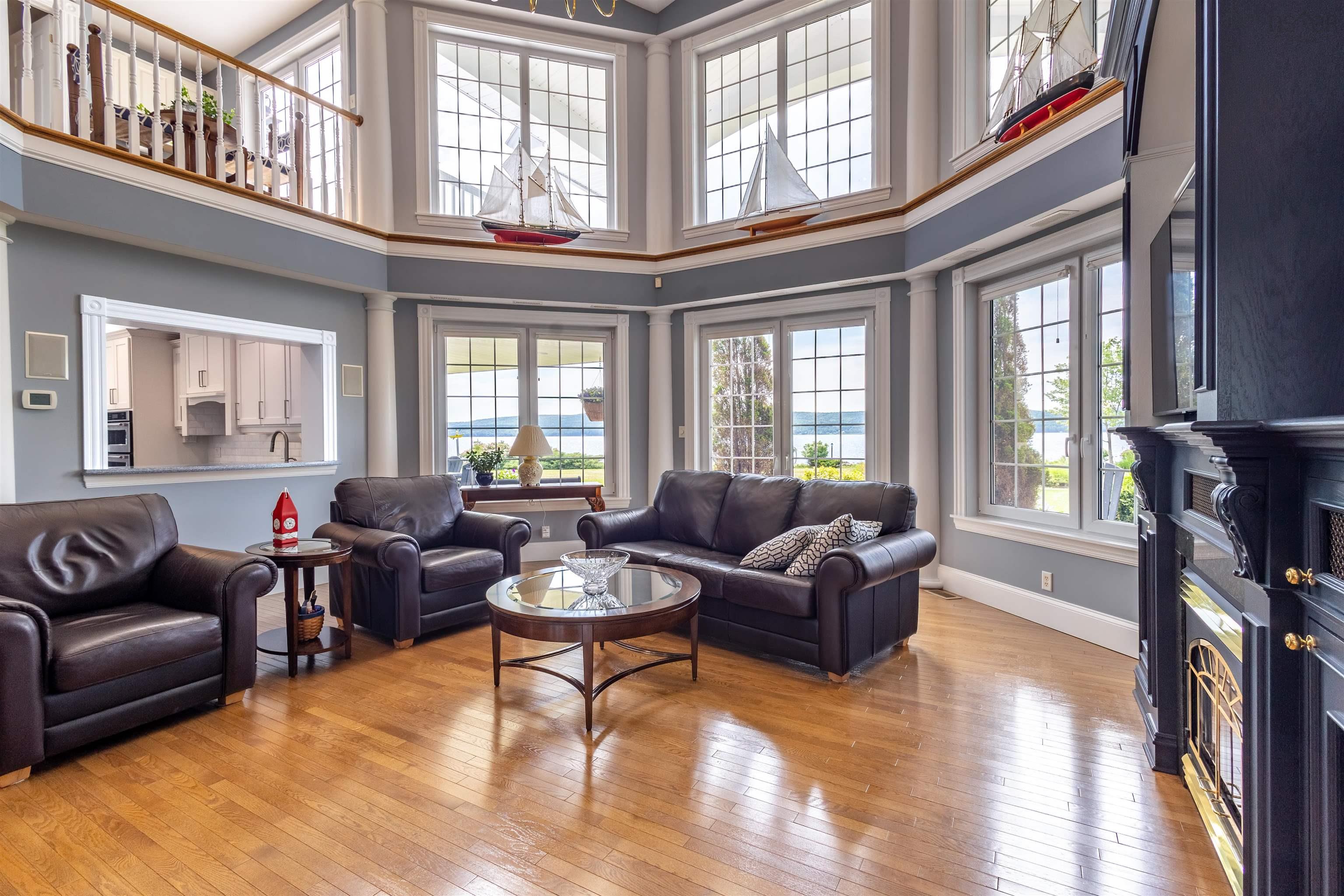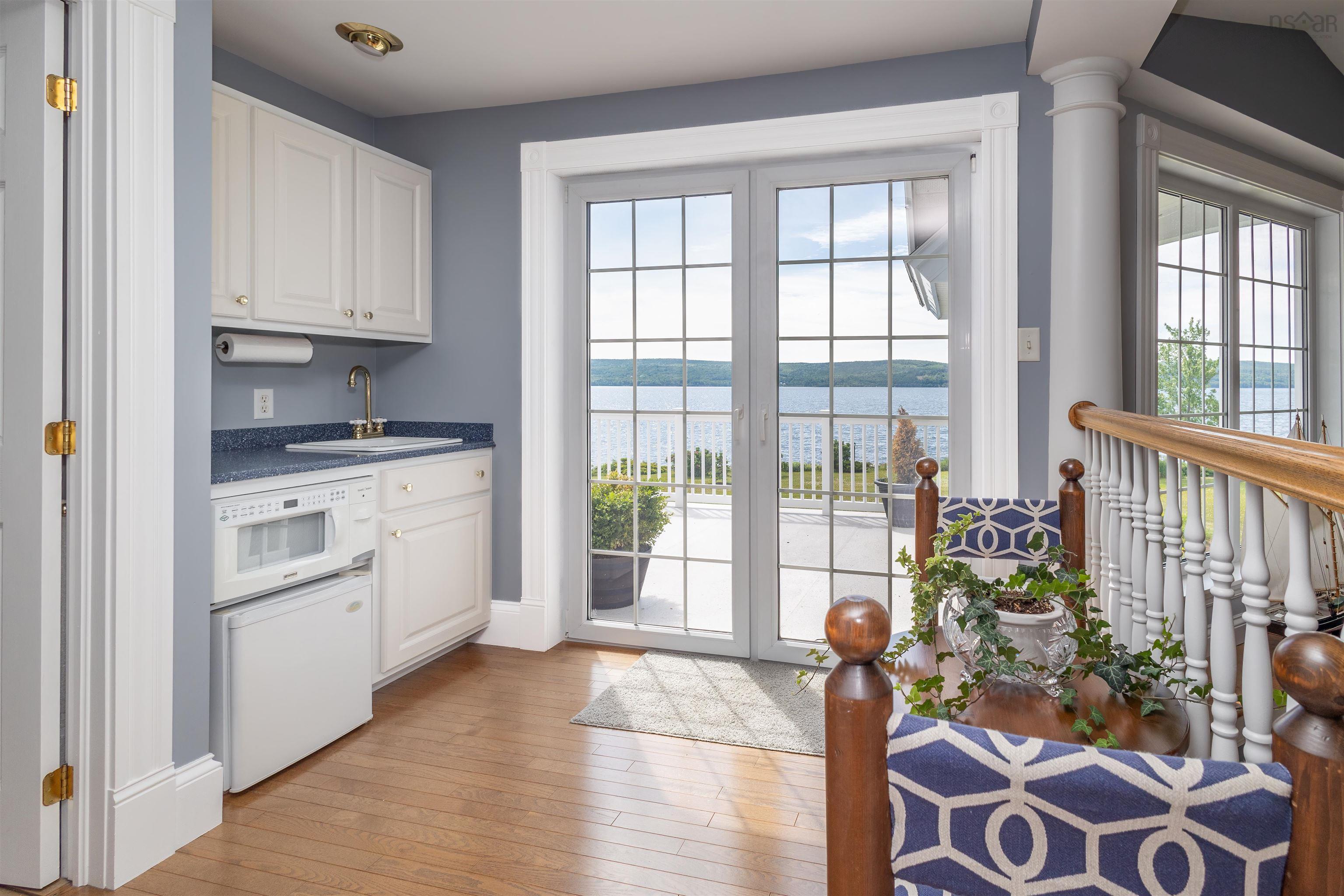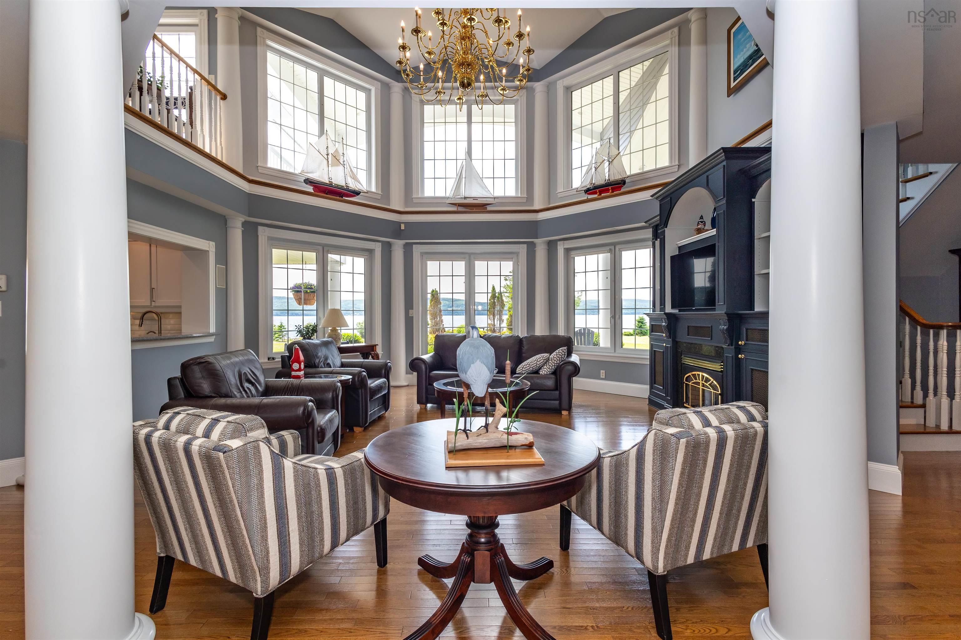 STUNNING PRIVATE 6.2 ACRE WATERFRONT RETREAT!!FOREIGN BUYER BAN EXCEPTION MAY APPLY!! ( $1.2 Million US Feb 2025) This Baddeck Inlet home is without a doubt one of the most outstanding homes located on the famous Bras d'Or Lake boasting 540 feet of prime waterfrontage! Five minutes to the picturesque village of Baddeck with shopping, a hospital, Bell Bay golf course, a marina and the Graham Bell museum. A one hour drive to Inverness will take you to the world famous golf courses known as Cabot Cliffs & Cabot Links. Some of the homes outstanding features include a stunning 23 foot high great room with fireplace & an Aladdin electric lift brass chandelier; geothermal groundwater furnaces for heating & cooling; wake up to lake views in your primary main floor bedroom with its 5 piece bath, 2 walk-in closets & fireplace. A main floor private office, formal dining room and a large modern kitchen with 2023 high end appliances plus a dining area with a fireplace; conveniently located off the kitchen is a 3pc bath and laundry room. The 26x26 attached garage is 100% finished including ceramic floors makes for an awesome party room or children's play-land! (of course cars are allowed too!) On the second floor there are two private guest bedrooms with bathrooms, a den, plus a kitchenette leading to a private balcony with expansive lake views. Also on the 2nd floor there are loads of closets and a private family room. Down at your level private beach area you have your own wharf and boat mooring. A separate 1500 square foot barn for all your toys includes a heated workshop area. A wide variety of mature trees, shrubs and flowers surround the home and outdoor patio areas.